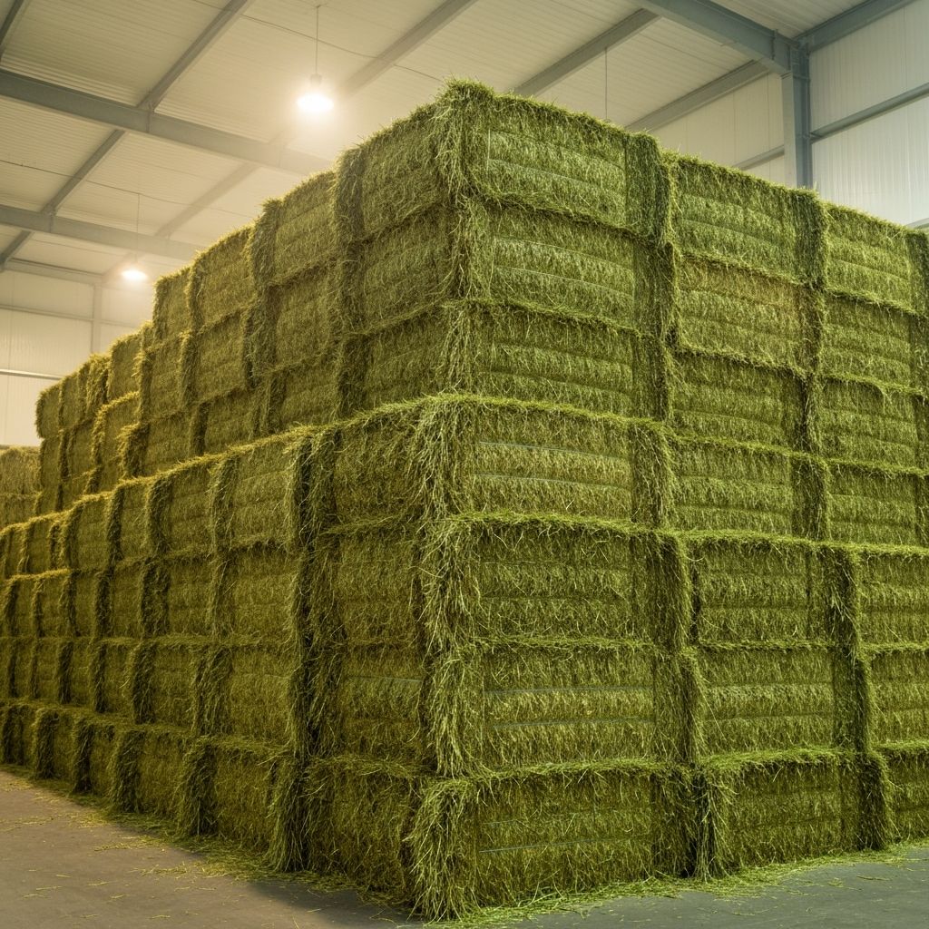 High-protein, low-moisture forage perfect for dairy cattle, camels, horses, and livestock across the Gulf region.